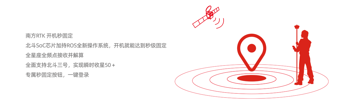 慣導傾斜測量 | 內置IMU慣性測量傳感器,支持慣導傾斜測量功能,根據對中桿傾斜方向和角度自動校正坐標 |