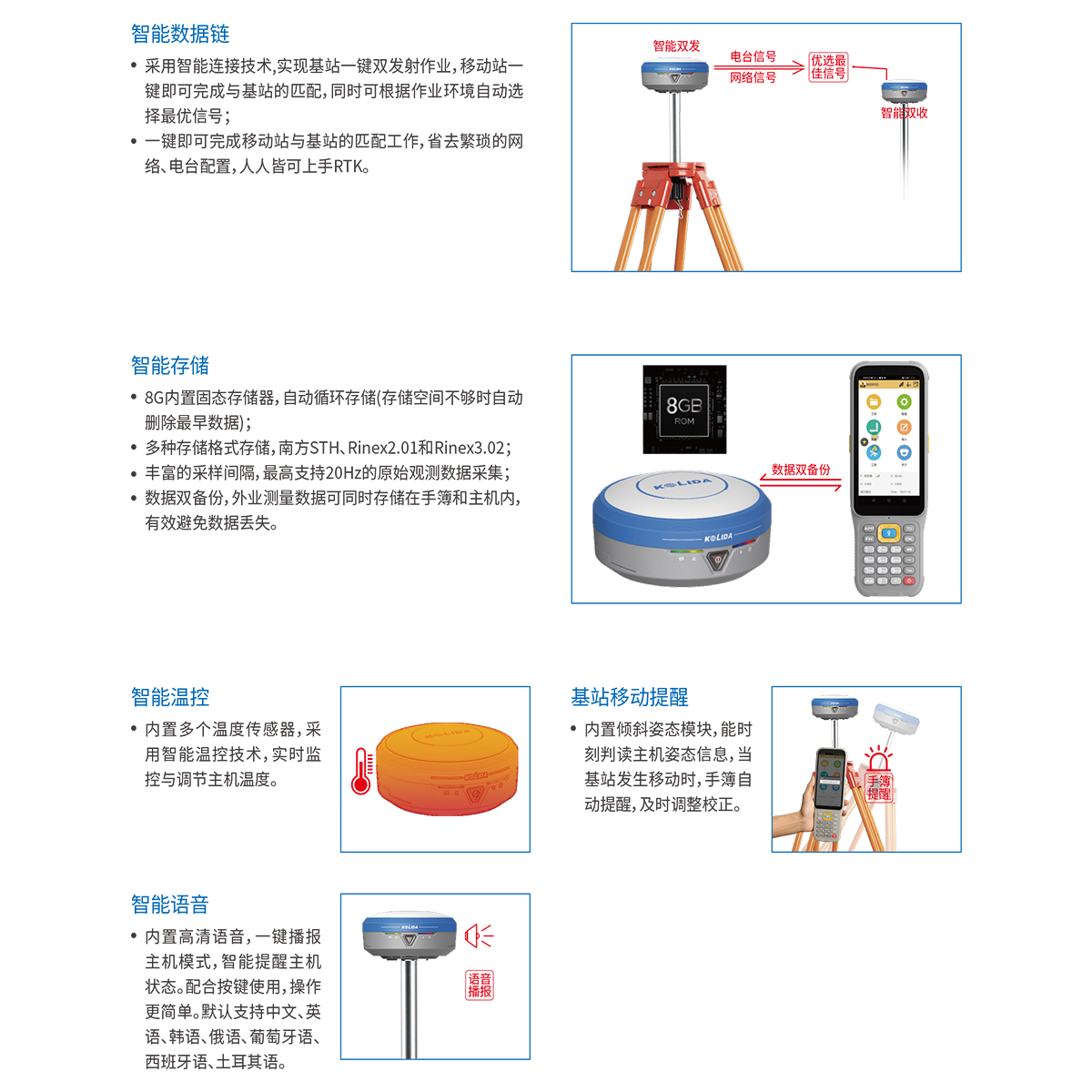 數據存儲 | 8G內置固態存儲器,自動循環存儲(存儲空間不夠時自動刪除最早數據);豐富的采樣間隔,最高支持20Hz的原始觀測數據采集 |